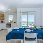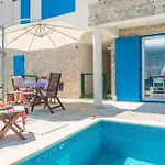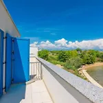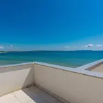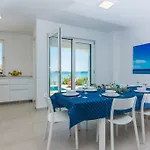 Une terrasse offre ici une vue sur la mer. Villa Miri Jasmine comprend une salle de bains avec une douche à l'italienne et une toilette séparée. Un sèche-cheveux et des draps de bain sont également fournis.